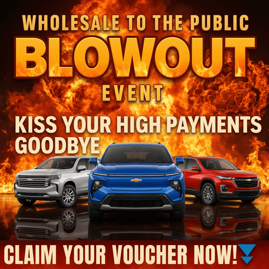 Wholesale-to-the-public messaging that promises below-market pricing. "Kiss your high payments goodbye" speaks directly to people drowning in monthly payments. We position the dealership as clearing out inventory at cost, which drives a sense of urgency.
