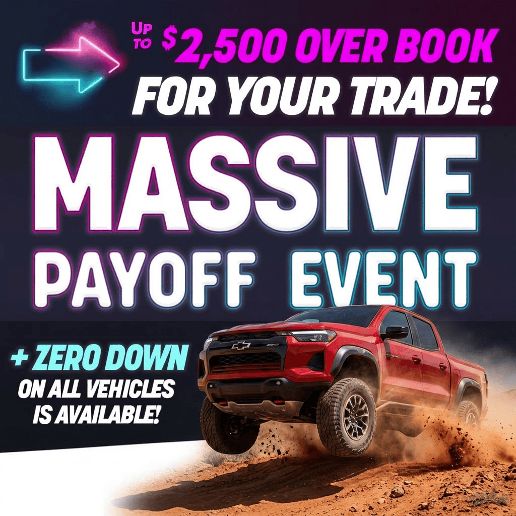 - Bold graphics with clear value propositions like "$0 Down" or "We Need Your Trade"